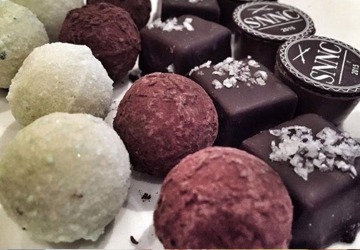 Vi har egen tillverkning av chokladpraliner, glass, tårtor, bakverk & desserter.