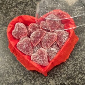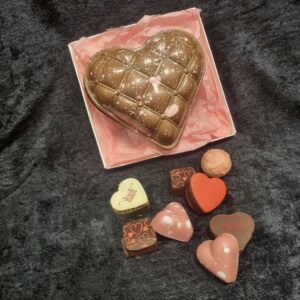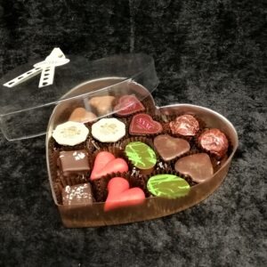 Chokladhjärta fyllt med 8st chokladpraliner. Obs! Skickas ej, måste hämtas i vår butik.