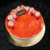 Vaniljbotten med hallonsylt, grädde och egenkokt äkta vaniljkräm. Dekorerad med en mjuk fluffig maräng runtomkring och toppad av ett berg av hallon. (Nöt och mandelfri)