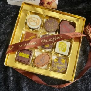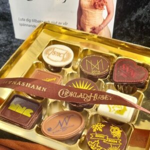 Exklusiv folder över pralinerna på både svenska och engelska medföljer.