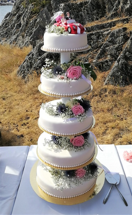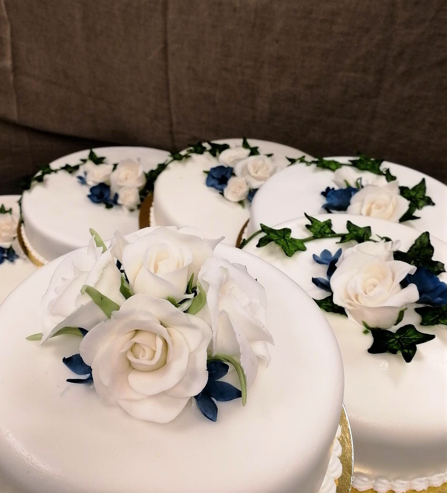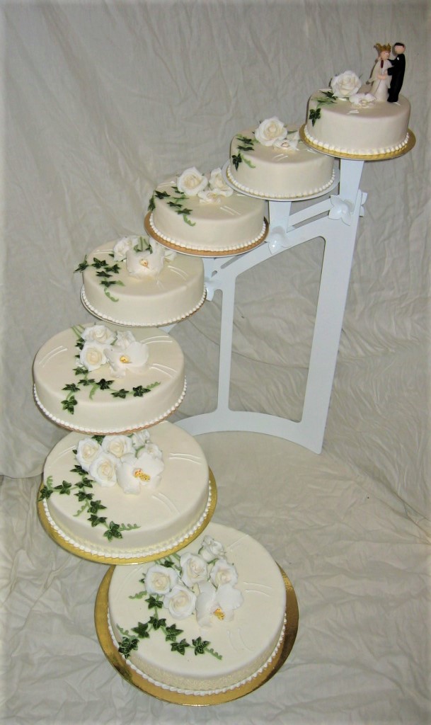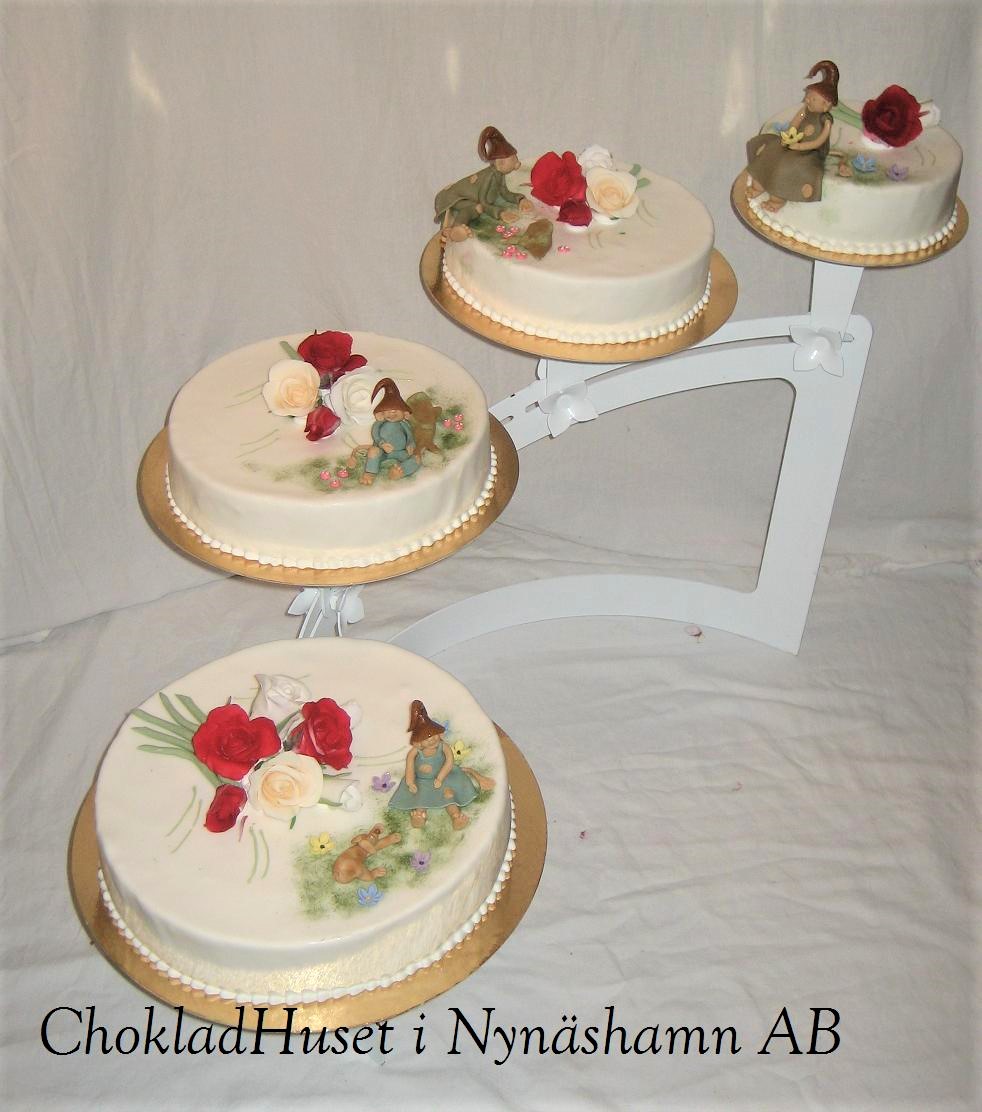 I priset ingår tårta, dekorationer, smakprover, konsultation samt hyra av tårtställning.